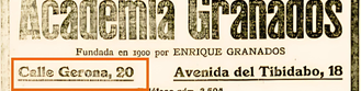 Buscant documentació gràfica per incorporar a la web i a l'arxiu a les hemeroteques, vam trobar uns anuncis (amb data octubre de 1911) amb aquesta nova ubicació de l'Acadèmia Granados al carrer Aragó 258, que per numeració es correspondria amb l'edifici de la Casa Jaume Salló (Rambla Catalunya 61). Però mesos més tard (abril de 1912) l'Acadèmia s'anunciava al mateix carrer Aragó, però en el número 285, tocant al C/ Pau Claris. En aquells moments en aquella adreça hi havia la Casa Carme Nin i Tudó, un edifici unifamiliar que no va ser enderrocat fins l'any 1930 i, per tant, amb tota seguretat devia ser una errata al moment de posar els anuncis.